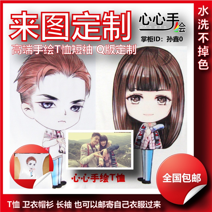 装t恤真人情侣素描照片q版漫画手制做班纯亲子diy头像服绘卡通定热门设计联盟服务商