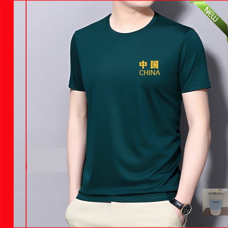 君妍服饰精品店源玖男装高档中国风圆领刺绣T恤男士短袖冰丝上衣热门设计联盟服务商