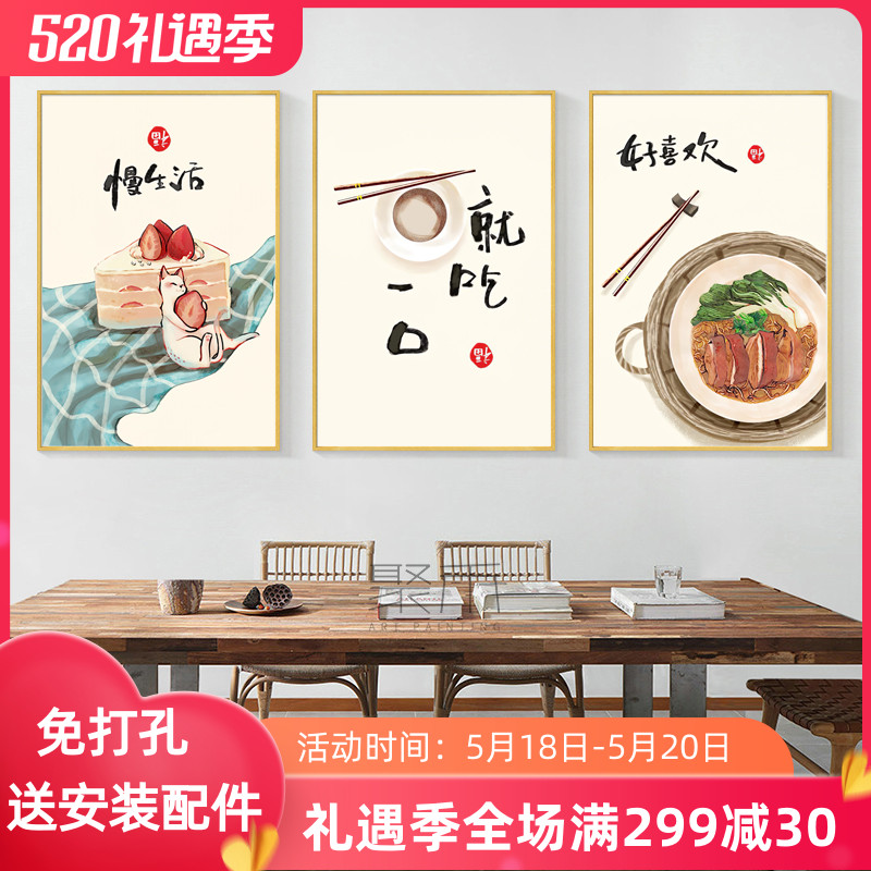 新品慢生活创意文字餐厅装饰画新中式简约挂画好好吃饭厨房饭厅壁热门设计联盟服务商