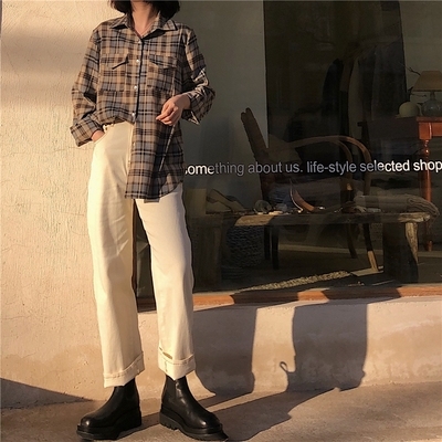 格子衬衫外套女设计感小众秋冬款长袖韩版宽松外穿百搭设计感小众热门设计联盟服务商