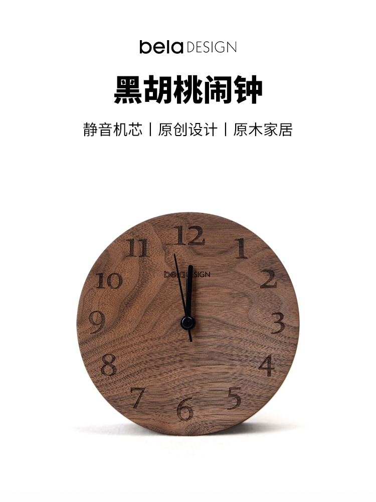 本来设计小闹钟静音床头钟儿童简约北欧风格学生用原木表木质时钟热门设计联盟服务商