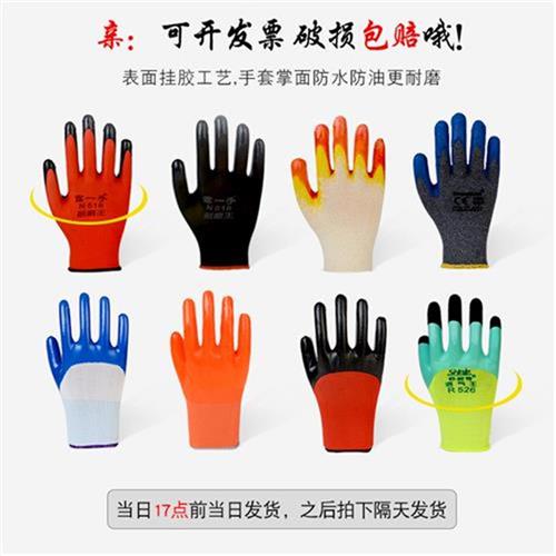 手套劳保耐磨带胶防水防s滑建筑劳动男工业乳胶加厚浸胶防护用品热门设计联盟服务商