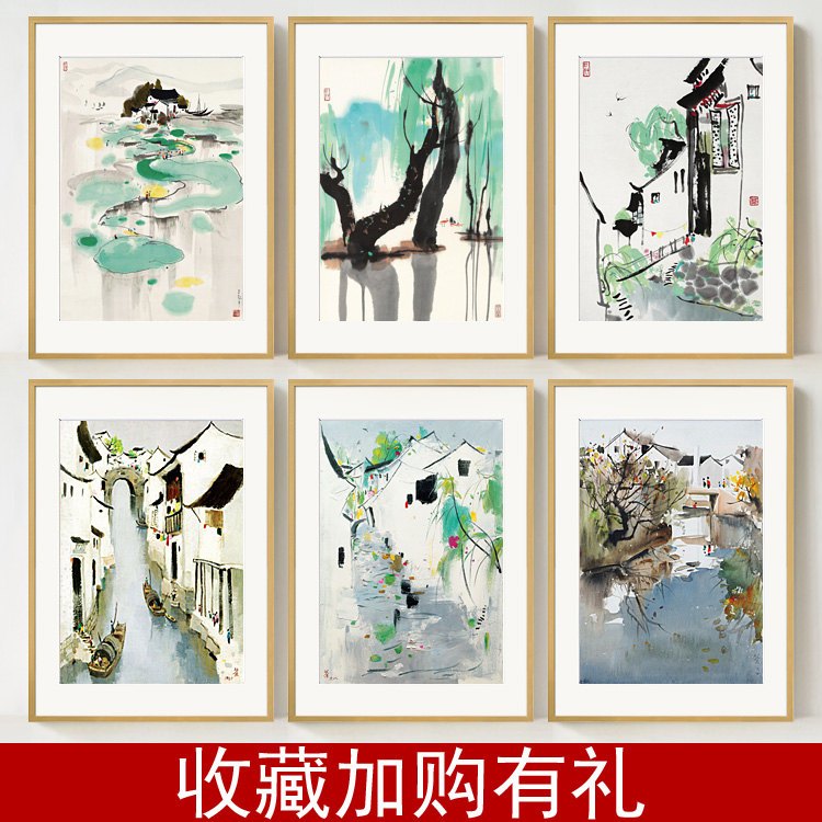 吴冠中水墨画江南水乡装修壁画现代简约带框挂画客厅室内装饰画热门设计联盟服务商