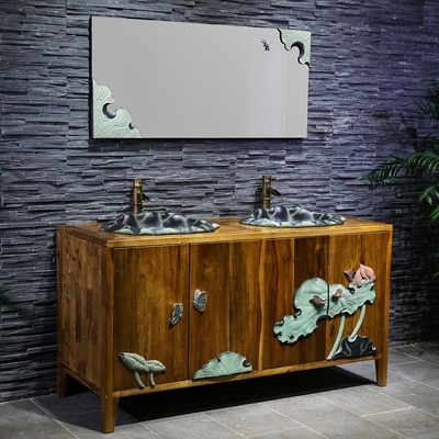 创意中式浴室柜组合双盆酒店会所茶楼工装洗手脸盆艺术台下洗漱台热门设计联盟服务商