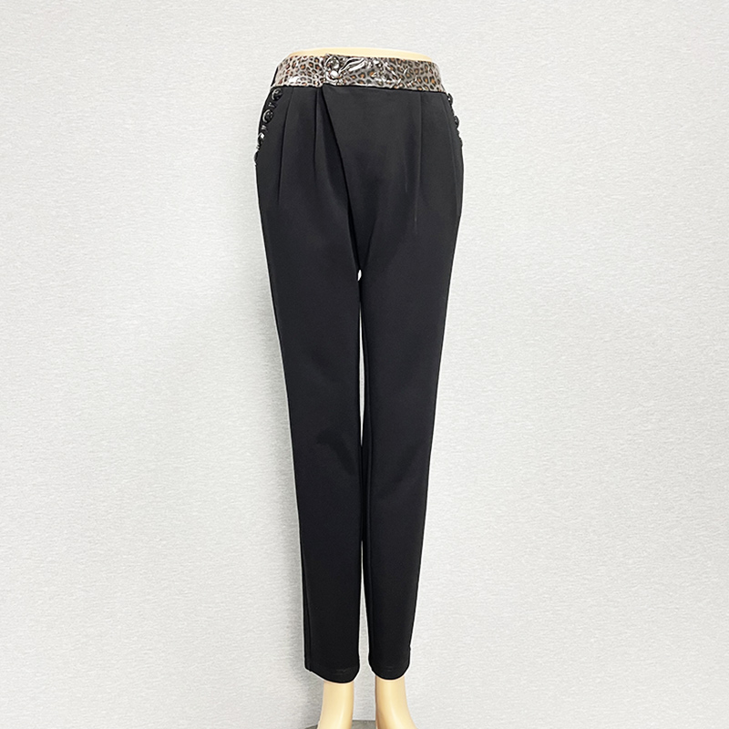 黑色厚针织小脚裤力萝卜裤钉珠橡筋腰设计感小众气质休闲铅笔裤热门设计联盟服务商