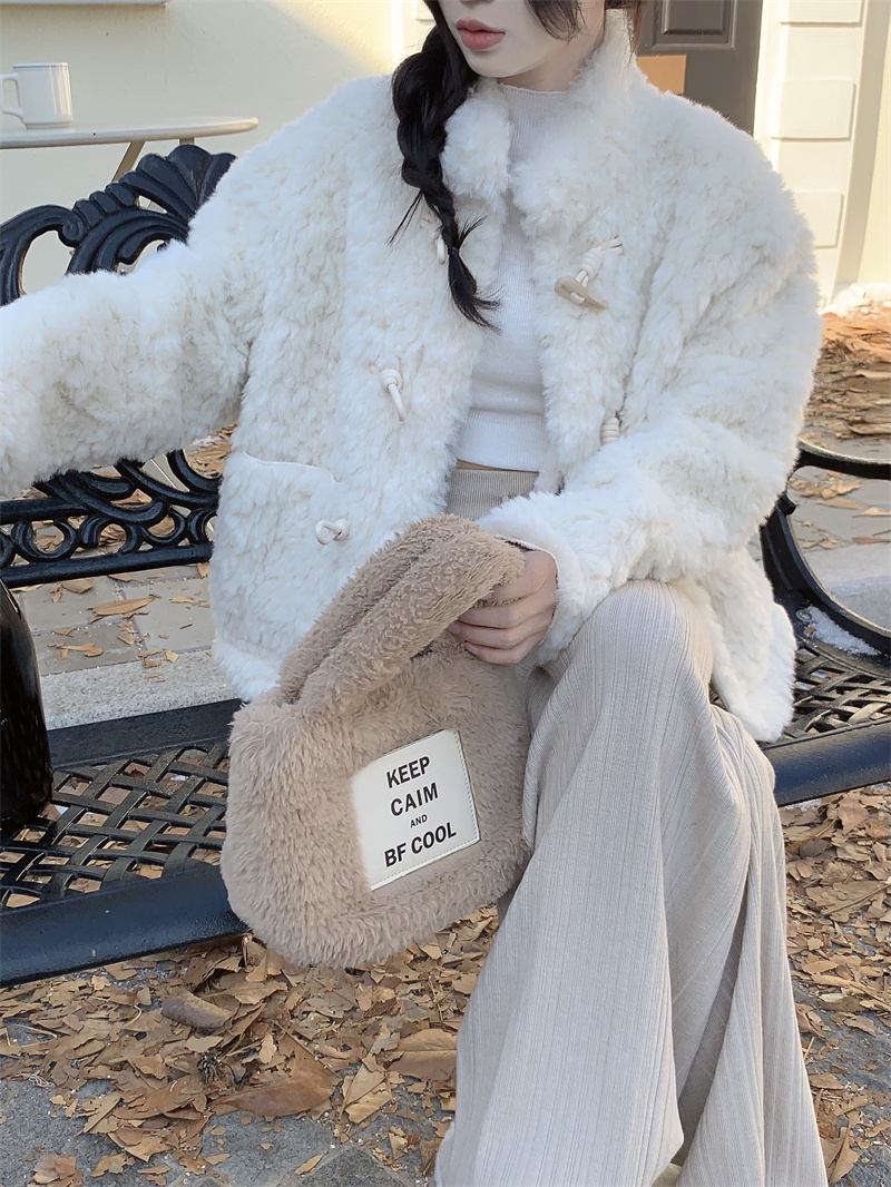 皮毛一体羊羔毛外套女立领加厚毛茸茸短上衣热门设计联盟服务商